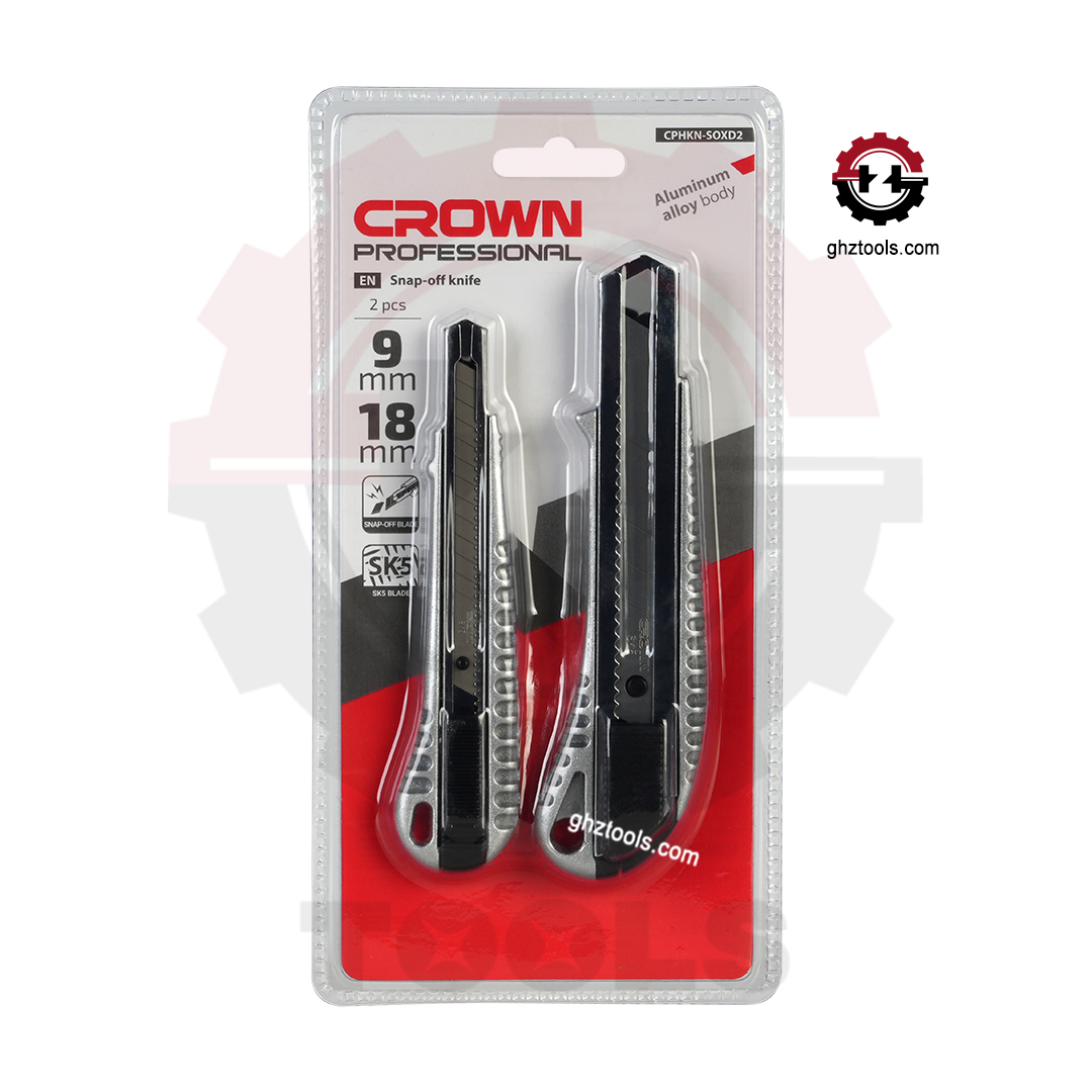 ست کاتر دو عددی ۹ و ۱۸ اینچ کرون با بدنه مقاوم و طراحی ارگونومیک، گزینهای ایدهآل برای برشهای دقیق و کنترلشده انواع متریال سبک در محیطهای صنعتی، کارگاهی و خانگی محسوب میشود. طراحی خوشدست و سبک این ست ابزار تسلط بیشتری هنگام کار فراهم کرده و خستگی دست را کاهش میدهد. این مجموعه با بهرهگیری از تیغههای استاندارد و سیستم قفل مطمئن، ایمنی بالایی در زمان استفاده، نگهداری و حمل ایجاد میکند.